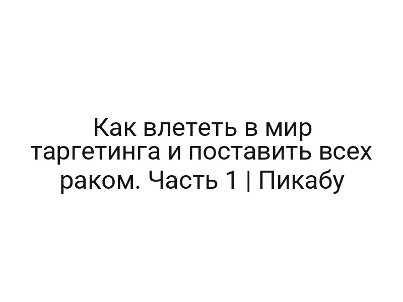 Как влететь в мир таргетинга и поставить всех раком. Часть 1