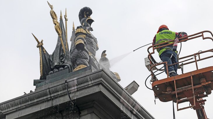 Промывка ждет также инженерные сооружения и объекты монументального искусства, среди которых градоначальник выделил памятники, скульптуры, пешеходные переходы, тоннели, мосты и эстакады. Параллельно с этим стартует подготовка к запуску фонтанов.